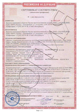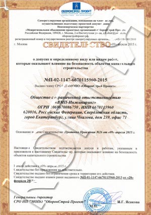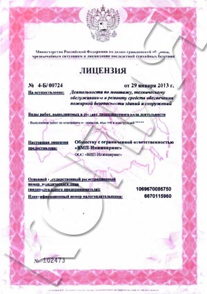 Огнезащитные покрытия ВМП испытаны ведущими отраслевыми институтами страны. Проектирование и работы по нанесению систем огнезащиты осуществляются на основании лицензии МЧС России № 4-Б/00724 и свидетельства о допуске СРО к выполнению проектных и строительных работ №№ П-02-1147-6670115960-2015 / С-166-66-0885-66-151116.