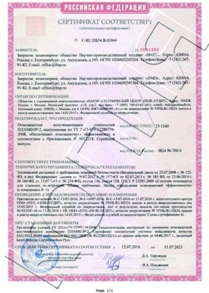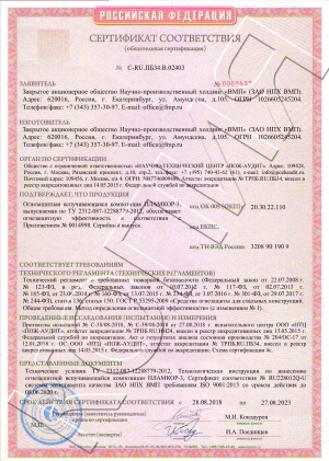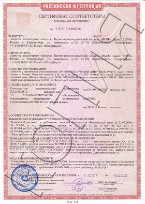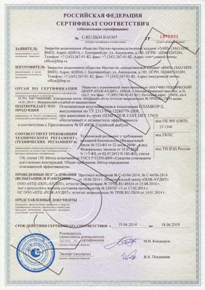Сертификаты соответствия по запросу на e-mail: hra@fmp.ru